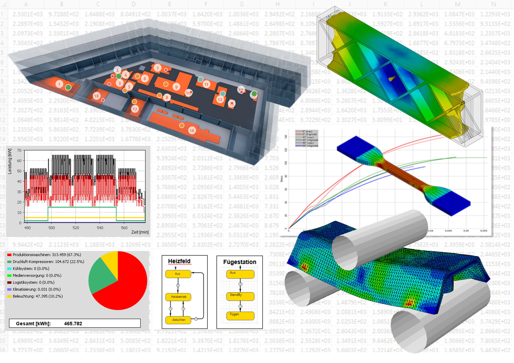 Eine besondere Herausforderung bei der Entwicklung neuer Technologien zur Herstellung funktionaler Produkte in Multi-Material-Bauweise besteht in der Bereitstellung geeigneter Simulationsmethoden zur Auslegung und Bewertung von Fertigungsprozessen, Prozessketten, Fabriken und den damit einhergehenden Produkteigenschaften.