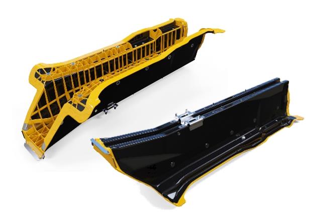 Der Roboter entnimmt das Halbzeug aus dem Ofen und transportiert ihn auf das Werkzeug der Spritzgießmaschine, wo bereits Metalleinleger integriert wurden. Nach Schließen des Werkzeuges werden eine thermoplastische Rippenstruktur und weitere Funktionselemente an das Hybridbauteil angespritzt.