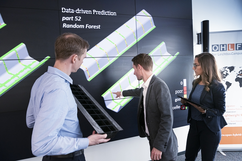 +Das Life Cycle Design & Engineering Lab dient als Engineering- und Demonstrationsumgebung für die lebenszyklusorientierte Auslegung von Multimaterialbauteilen in einem interdisziplinären Ansatz. Dabei basiert das Lab auf der Annahme, dass ein effizientes Zusammenspiel der technischen Disziplinen Fahrzeugentwicklung, Produktion und Life Cycle Engineering ein lebenszyklusorientiertes Produktdesign und -herstellung fördert. Neben der Produktion an sich, stehen auch Nutzungs- und End-of-Life Optionen (Circular Economy) im Fokus der Betrachtung, insbesondere in Hinblick auf neue Mobilitätskonzepte wie die Elektromobilität und Shared Mobility. Die Vorgehensweise zum interdisziplinären Engineering erfolgt analog des Visual Analytics Ansatzes, der die Phasen Datenerfassung, Modellierung, Visualisierung und Wissensaufbau umfasst. Dazu stehen im Lab benötigte Software- und Hardware-Tools (bspw. Videowand und interaktive Whiteboards) sowie Workshop-Elemente bereit. Eine Grundvoraussetzung für eine richtungssichere Entscheidungsunterstützung, z.B. auf Basis einer Energie- und Stoffstrommodellierung, ist eine solide Datengrundlage. Um diese zu schaffen, stellt das Labor die zentrale Produktionsdatendrehscheibe des Forschungscampus dar. Hierbei werden Prozess-, Zustands-, Energie- und Produktdaten aus dem Technikum über standardisierte Protokolle (OPC UA) erfasst und in einem Data Warehouse gespeichert. Dies ermöglicht auch die Entwicklung von KI-Anwendungen, wie die modellbasierte Analyse von Prozess-Produkt-Wechselwirkungen, welche in Form von virtuellen Qualitätsmessstellen (Virtual Quality Gates) als Assistenzsysteme zur Prozessplanung und –steuerung bereitgestellt werden können.